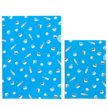 これまた人気の「割り箸ボールペン」を引き連れて、ゆるく愛らしい柄のクリアファイルになりました。